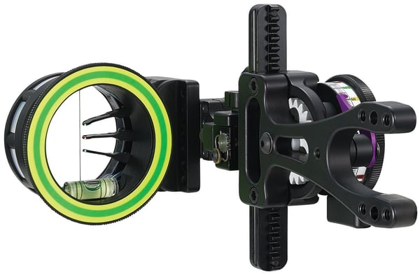 MRT (Multi-Ring Technology) pin guard 3 and 5 pin versions come with two multi-ring options, a small and large, as well as one single ring. This increased versatility ensures proper peep to sight alignment with most setups. The multi-ring options provide the archer with a much higher level of accuracy in varying lighting situations by always giving the archer a bright visible ring to align their peep. Further upgrades include a larger, more visible level, better protected, fiber optics, and an improved lighting cavity that allows the sight light (not included) to be more evenly distributed and protects unwanted light from escaping. Bullet proof pins completely conceal and protect the fiber. New improved yardage dial with better grip and a more relief from the sight tape and pointer. Lightweight