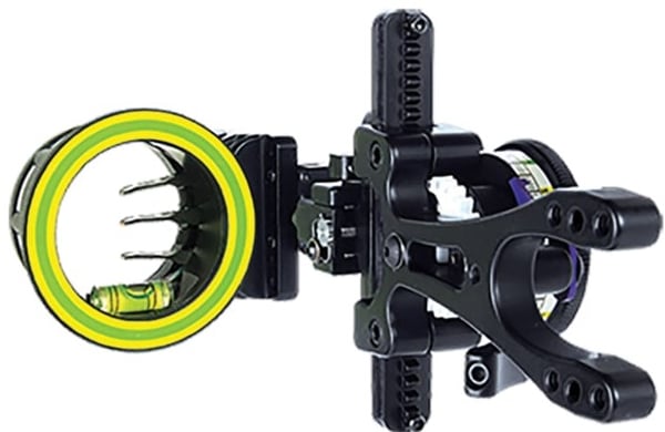 MRT (Multi-Ring Technology) pin guard 3 and 5 pin versions come with two multi-ring options, a small and large, as well as one single ring. This increased versatility ensures proper peep to sight alignment with most setups. The multi-ring options provide the archer with a much higher level of accuracy in varying lighting situations by always giving the archer a bright visible ring to align their peep. Further upgrades include a larger, more visible level, better protected, fiber optics, and an improved lighting cavity that allows the sight light (not included) to be more evenly distributed and protects unwanted light from escaping. Bullet proof pins completely conceal and protect the fiber. New improved yardage dial with better grip and a more relief from the sight tape and pointer. Lightweight