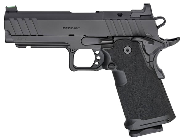The Prodigy from Springfield Armory® takes the proven 1911 platform and enhances it with double-stack capacity and a performance-driven feature set. Reconfigured around a double-stack magazine, the Prodigy's polymer grip module mounts to its forged steel frame offering capacities of 17+1 and 20+1. Optics ready with an ambidextrous safety and Picatinny rail the Prodigy combines the most beloved characteristics of the 1911 with modern capacity for unrivaled performance.