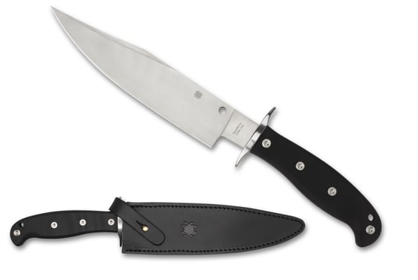 Spyderco founder Sal Glesser has always liked Bowie Knives, and his Respect design pays tribute to the classic American Bowie Knife while expressing it with state-of-the-art modern materials. The heart of the design is its blade, which is painstakingly crafted from CPM® 154 stainless steel. An impressive .300-inch (7.6mm) thick at the spine and ricasso, the Respect’s broad, satin-finished blade is just over 1.5 inches (38.1mm) wide and features a full-flat grind for both strength and superior edge geometry. The long, straight, double-beveled swedge on the back of the blade is unsharpened, but ensures an exceptionally acute point.