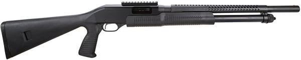 Take on any tactical situation with a shotgun built specifically for the task. This 320 Security model combines an 18.5-inch barrel, heat shield, one-piece rail and a black matte synthetic stock with a pistol grip. Like all 320 shotguns, it features a smooth, reliable pump action, proven rotary bolt and dual slide-bars.