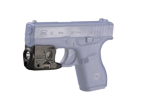 The TLR-6 is the first subcompact pistol light with both an LED illuminator and a red aiming laser and is designed to securely attach to the trigger guard of the Glock 42 and 43. This item features a C4 LED illuminator, a 640-660nm red laser, and a 10-minute auto shut-off to converse batteries. Powered by two CR1/3N lithium batteries (included) that can be replaced while light remains mounted on gun preventing the need to re-sight the laser after battery change. Additionally, this light is constructed of durable, impact-resistant polymer, is IPX4 water-resistant and operates in temperatures ranging from -20 to +120 degrees Fahrenheit.