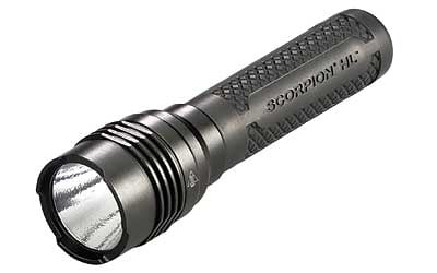 Replicates the size, shape and feel that you love so much about the Scorpion series, but with new technology and a 600-lumen output. It also features TEN-TAP Programming that gives users the choice of three operating modes. The combination of small size and output from the LED result in one of the brightest personal carry lights for its size. Rubber armor grip sleeve provides a sure grip. The barrel and head are crafted from 6000 series machined aircraft aluminum and the head has an anodized finish. The glass lens is O-ring sealed. The light source features LED technology, impervious to shock with a 50,000-hour lifetime. The Scorpion HL's multi-function, push-button tactical tail switch allows for one handed operation of momentary, variable intensity or strobe mode. This TEN-TAP programmable switch allows user selection of one of three different programs: high/strobe/low (factory default), high only, or low/high. Electronic power regulation provides maximum light output throughout battery life. Built for durability, the Scorpion HL features an IPX7 rated design, waterproof to 1-meter for 30-minutes, and is 1-meter impact resistance tested. Powered by 2 3-volt CR123A lithium batteries with a shelf life of 10-years. Includes anti-roll face cap and batteries. Serialized for positive identification. Dimensions: 5.46-inches long, 0.96-inch barrel diameter, 1.375-inch head diameter, and 1.45-inch tri-lobe diameter. Weighs 4.8-ounces with batteries.