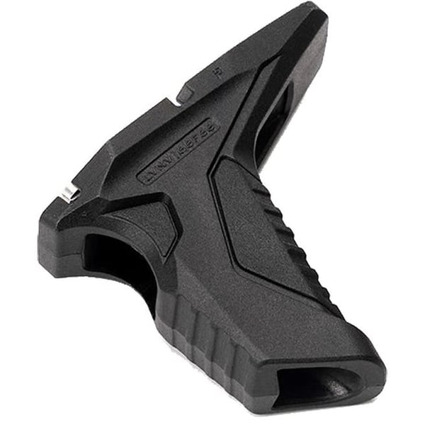Rearward-angled hand stop for pull-style grip and improved recoil control, featuring the LINK mount for M-LOK/KeyMod and integrated Cable Management System® for tidy wire routing.