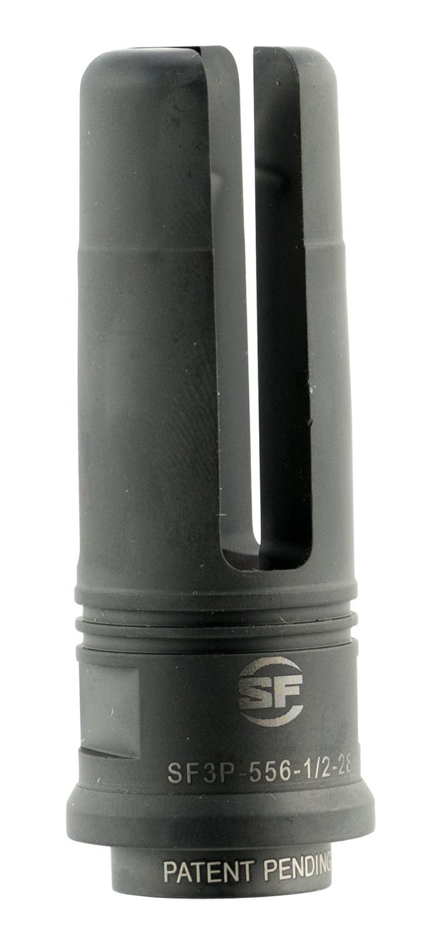 SureFire Suppressor Adapter/Muzzle Brake, fits M4 / M16 weapons and variants with 1/2-28 muzzle threads. It greatly reduces both recoil impulse and muzzle rise so that the weapon tracks straight back to keep you on target for faster shot-to-shot recovery. The patented Impulse Diffusion design minimizes side blast and rear-directed concussion effects. The SFMB-556-1/2-28 also serves as a rock-solid mounting adapter for SureFire SOCOM Series 5.56 mm Fast-Attach suppressors. Precision machined from US mill-certified heat-treated stainless steel bar stock including high-precision single-point cut threads for optimum thread interface the SFMB-556-1/2-28 muzzle brake is given a black Ionbond DLC coating to provide maximum protection under harsh environmental conditions and to facilitate cleaning even after extreme use.