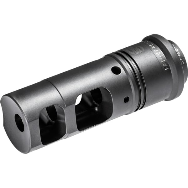 SureFire Suppressor Adapter/Muzzle Brake, fits M4 / M16 weapons and variants with 1/2-28 muzzle threads. It greatly reduces both recoil impulse and muzzle rise so that the weapon tracks straight back to keep you on target for faster shot-to-shot recovery. The patented Impulse Diffusion design minimizes side blast and rear-directed concussion effects. Precision machined from US mill-certified heat-treated stainless steel bar stock including high-precision single-point cut threads for optimum thread interface the SFMB-556-1/2-28 muzzle brake has a black Ionbond DLC coating to provide maximum protection under harsh environmental conditions and to facilitate cleaning even after extreme use. The SFMB-556-1/2-28 also serves as a rock-solid mounting adapter for SureFire SOCOM Series 5.56 mm Fast-Attach suppressors. A rear labyrinth seal minimizes potential carbon buildup in the indexing system and facilitates suppressor removal after extended firing.