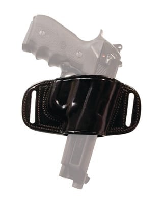 Compact design for easy concealment. Rides very close to the body. Two piece construction with front molding. Completely leather lined. Fits multiple barrel lengths of the same gun model. Belt slots designed to fit belts up to 1.75 inch wide.