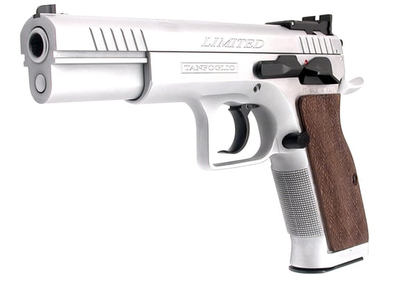 The Tanfoglio Defiant Limited Pro double/single action pistol is designed specifically to meet the requirements of the I.P.S.C Production Class. This model features hard chromed finishing, squared trigger guard, checkering on the front and back of the frame for increased grip, polygonal rifle, and larger slide serrations. Standard on the Limited Pro are the Custom Safety, Custom Magazine Release that is user reversible, walnut checkered grips, fully adjustable rear Supersight, and interchangeable front sight.