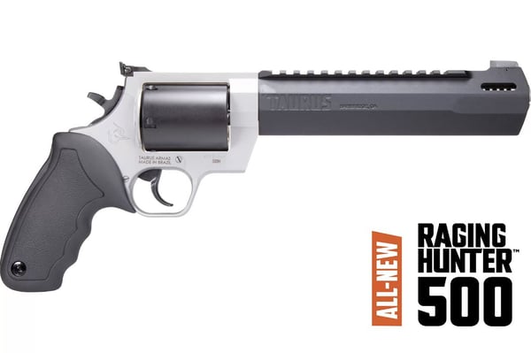 The Raging Hunter is now available in the most powerful factory revolver round: The 500 Magnum! Hunters have been asking for their favorite revolver in 500 Magnum, and now it's here. This Raging Hunter comes with all the features you're used to, but now with all the terminal ballistics of the 500 Magnum. The 500 Magnum Raging Hunter is available in 5, 6.75, and 8 inch barrel lengths, and features custom barrel ports to help reduce the recoil of 500 Magnum. With a 5 round capacity, the 500 Magnum Raging Hunter is the perfect companion as a backup gun for dangerous game hunts, or a primary gun for anything that walks on 4 legs.