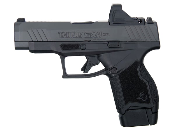 The Taurus® GX4XL Micro-Compact Standard Semi-Auto Pistol gives you an extra inch on the gas-nitrided slide compared to the standard GX4, which increases your sight radius, muzzle velocity, and can help increase accuracy. The slide features front and rear cocking serrations and is topped off with a white-dot front sight and a blacked out rear sight. The DLC-coated barrel will prevent wear and resist corrosion. The frame accepts 11 and 13-round magazines. The frame also has swappable backstraps. One backstrap gives you a standard profile while the other pushes you up for a higher wrist position with a higher palm swell. The flat-faced trigger gives you a clean, crisp break with a short reset for quick follow-up shots.