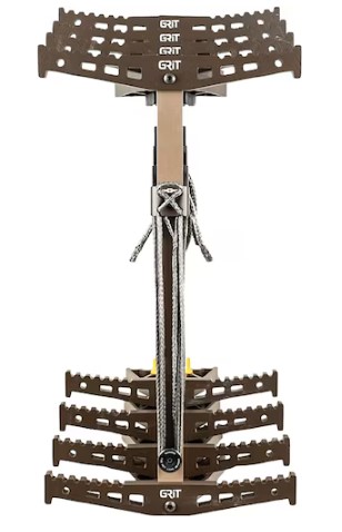 The Grit Workhorse Climbing Sticks are designed to include all the best features available in a mobile hunter's climbing stick. The Workhorse Climbing Sticks attach to the tree with Grit's patented DynaLite rope and tab. There are no heavy buckles, no mechanical pieces, and no fiddle factor. Stacking your Workhorse Climbing Sticks for transport is a breeze with the built in StickLoc pin system. Simply align the pins along the bottom step and snap together and the top. These sticks also include Grit's patent-pending RCS (Rope Containment System). Manage your DynaLite ropes quickly and easily by wrapping them around the installed RCS button.