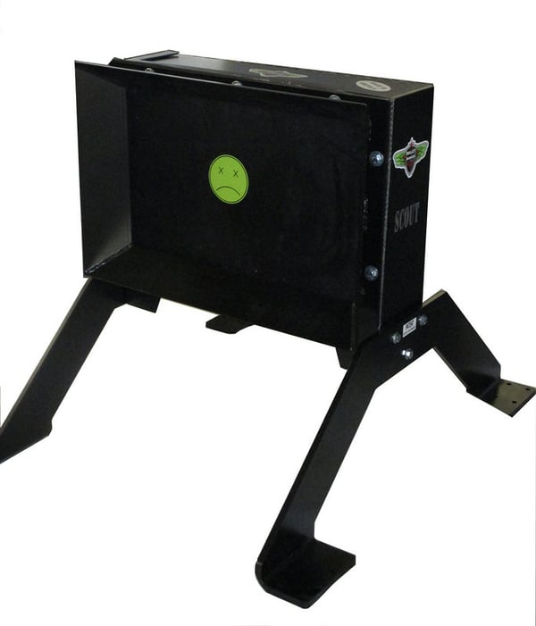 A safe way to plink. Whether taking it to hunting camp or using it in the backyard, the Scout’s a safe way to plink. Intended for indoor/outdoor private ranges or basement use .17 – .22 rimfire standard and magnum rounds. Legs Included.