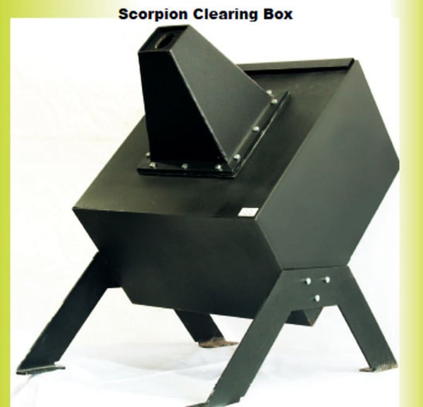 5. Comes with legs that can have the clearing box on a 45 degree angle (as shown) or at 90 degree and upright if the Scorpion is mounted on a shelf or stand.