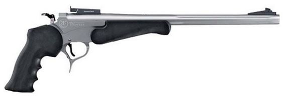 The Thompson Center Encore Pro Hunter is the most versatile single shot pistol around. Simply change the barrel to convert to a different caliber. This model features stainless steel construction, black synthetic grips and forend, and adjustable fiber optic sights. Long a favorite of the metal silhouette shooting community because of its superb accuracy, the Encore Pro Hunter is just the ticket if you are ready for the unique challenge of single shot handgun hunting.