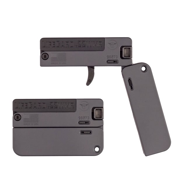 Trailblazer LifeCard 22 WMR (22 Mag) Grey Pistol - 1 Round - The new standard for Discreet Carry – a folding, single-shot .22WMR pistol that's no bigger than a stack of credit cards. At .5 inches thin and weighing less than 7 ounces, LifeCard will be the last gun you'll leave behind.