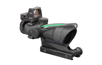 Adapted from the battlefields, US Forces have begun improving this proven Trijicon ACOG scope by adding a small red dot sight on top for close encounter missions. Trijicon has now created a similar model for the public, the TA31-D-100548. The main Trijicon scope provides a dual-illuminated reticle using fiber optics and tritium for bright aiming point in any light condition. The ranging reticle allows for bullet drop compensation out to 800 meters without any manual adjustments. A Trijicon RMR Type 2 sits on top with a 3.25 MOA aiming dot.