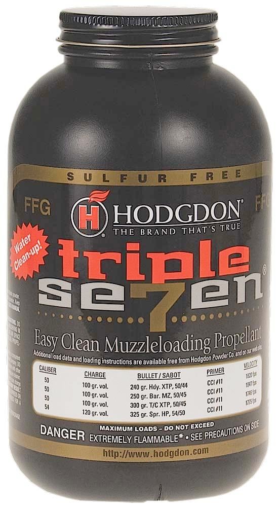 Hodgdon Triple Seven granular powders leave no sulfur odor and leave less residue in the barrel for much easier cleaning. It produces the highest velocities by volume of other granular muzzleloading propellants, and as a result produces flat trajectories.