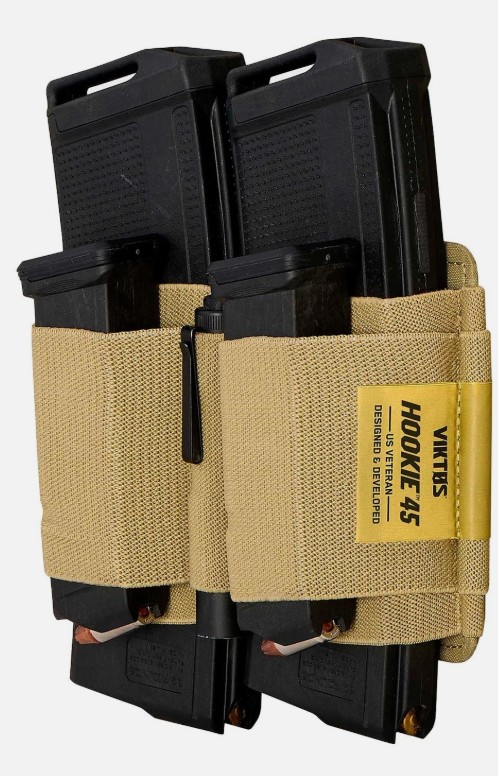 The Viktos Hookie 45 Mag Pouch is a modular magazine carrier designed to hold up to two rifle mags and two pistol mags using sturdy elastic webbing for secure retention. Its full hook backing mounts easily to any loop-faced panel—perfect for bags, safes, and modular loadouts. Designed by U.S. veterans and tested by professional CCW trainers, it offers reliable, organized mag storage and comes backed by a one-year workmanship and materials warranty.