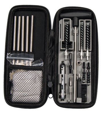 • Includes: AR chamber brush, multi-function bolt scraper tool, cleaning pick, nylon cleaning brush, collapsible 36? stainless steel cleaning rod with rotating T-handle, (3) Star Chamber Cleaning Pads, patches for .22 or .30 cal, nylon brushes for .22 or .30 cal and jags for .22 or .30 cal