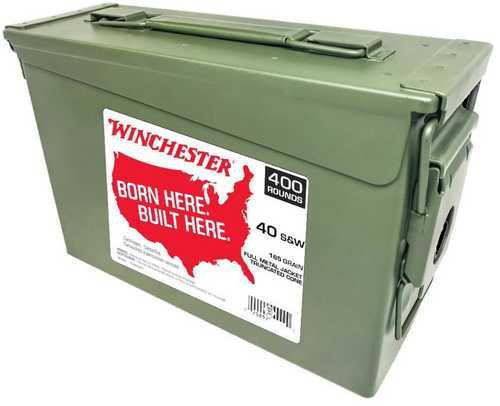 WINCHESTER USA Ammo Can 40 S&W 165Gr Full-Metal Jacket Brass Ammunition | 400 Round