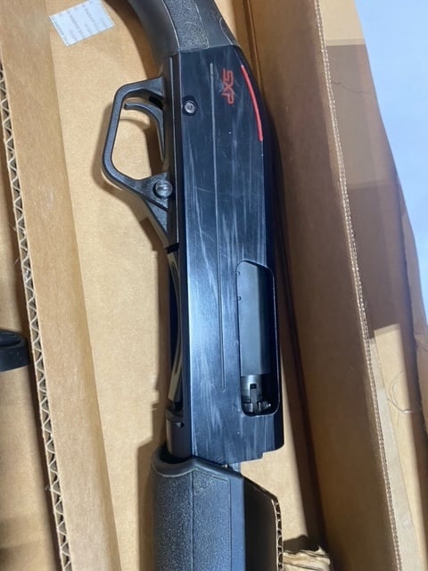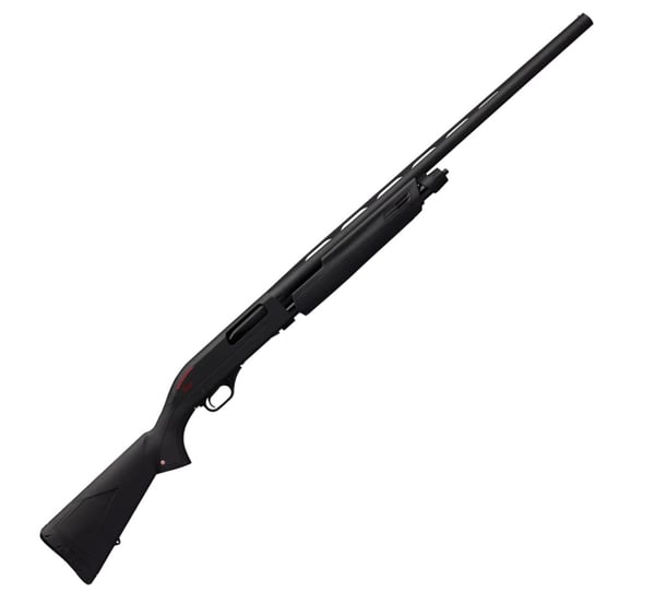 With its weather resistant stock and non-glare finish, the Winchester® SXP® Black Shadow® Pump-Action Shotgun makes a great choice for duck hunting, turkey hunting, or just a rugged, reliable all-purpose shotgun. The gun's durable synthetic stock with textured forend and pistol grip gives your hands a non-slip grip in any weather, while the special Black Shadow non-glare matte black finish on the barrel and receiver won't spook wary game. This trustworthy pump-action design utilizes 4 massive lugs on its rotary bolt for incredible strength with a solid lockup and an inertia-assisted action to provide you with super fast follow-up shots on missed birds or multiple targets. The dual steel slide bars eliminate twisting and binding when cycling the action.The brass front bead on the vent rib is quick to pick up in any light. The Inflex Technology™ recoil pad which helps direct and channel recoil impulse, moving the comb down and away from your cheek, while a hard heel insert on the pad makes mounting the shotgun snag-free. The bore is hard chrome-plated and back-bored for improved patterns, and uses the interchangeable Invector-Plus™ choke tube system. A crossbolt safety button on the front of the trigger guard offers easy access, even when wearing gloves. A speed-plug system makes removing the magazine plug quick and easy, without tools. The Winchester SXP Pump-Action Shotgun, with the Black Shadow's Includes choke wrench and 3 chokes: F, M, IC.